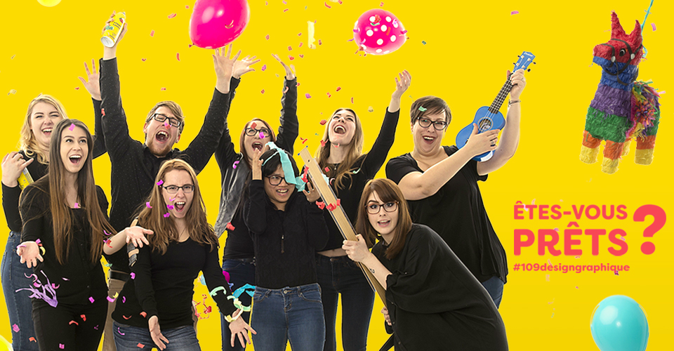 Les finissants 2017 du programme de design graphique sont un petit groupe de neuf graphistes uniques. Après plus de 6200 heures passées à travailler fort sur une tonne de projets et à créer de belle amitiés, ils sont prêts à célébrer !